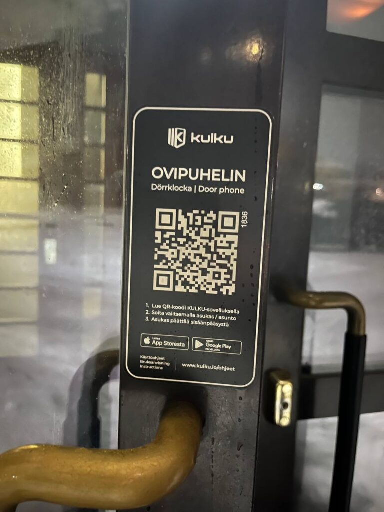 Taasko yksi sovellus lisää? Toasin kohteiden ulko-oviin on yhtäkkiä ilmestynyt QR-koodeilla varustettuja tarroja. Kyseessä on kulunhallintajärjestelmä, jonka on määrä korvata perinteiset ovikoodilaitteet ja ovipuhelimet. Päästääkseen ihmisiä rappuun asukkaan on ladattava älypuhelimeensa Kulku-niminen sovellus. Älyaikaan on siirrytty tänä keväänä ainakin Toas Pekolassa ja Mikontalossa.